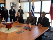 El Presidente de Uruguay, Tabaré Vázquez, y el canciller de Chile, Heraldo Muñoz, firmaron este martes 4 en la Torre Ejecutiva en Montevideo la ampliación del tratado comercial ya existente entre ambos países, profundizando con ello las relaciones en este ámbito.